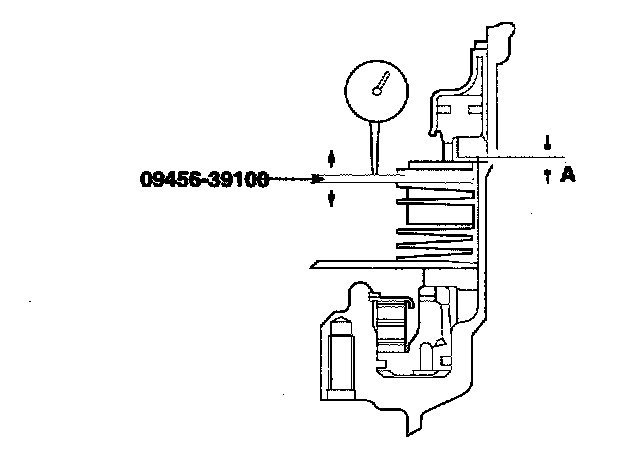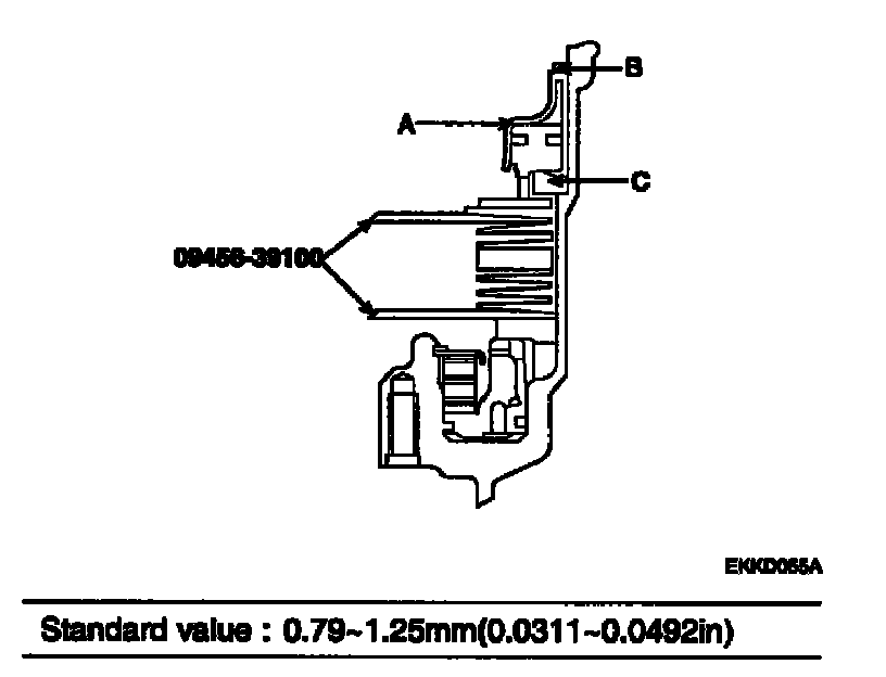 To obtain a reference value, select a pressure plate whose thickness is within the following value. [A (moving amount) + thickness of the special tool - 1.25(0.0492)] to [A (moving amount) + thickness of the special tool - 0.79(0.0311)].