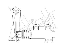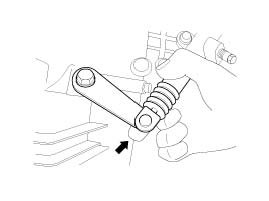 7. After finishing step 6, push the release lever to the arrow mark. If there is a click sound, the release bearing and clutch cover are aligned correctly. If the assembly does not snap into place, start with step 1 again. Release lever operating range is 3° or less. If the range is over 3°, the release bearing and clutch cover are not aligned correctly. Push the release lever to the arrow mark one more time.