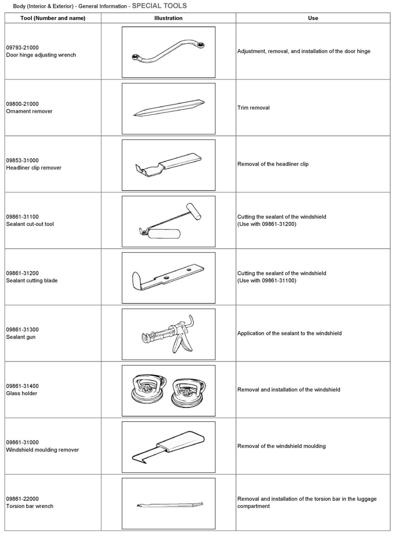 Special Tools: