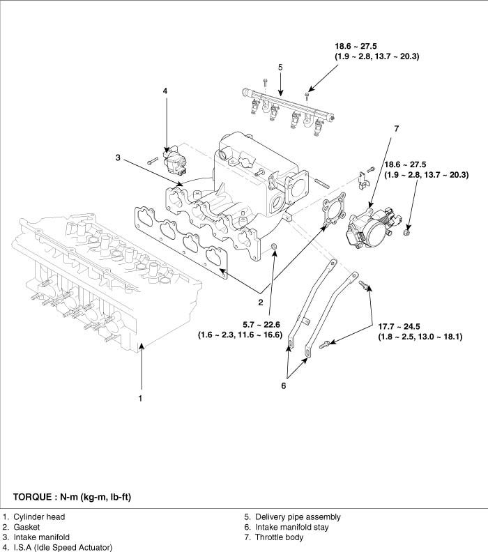 Tightening torque: 18.6 - 27.5 Nm (1.9 - 2.8 kg-m, 13.7 - 20.3 ft. lbs.)