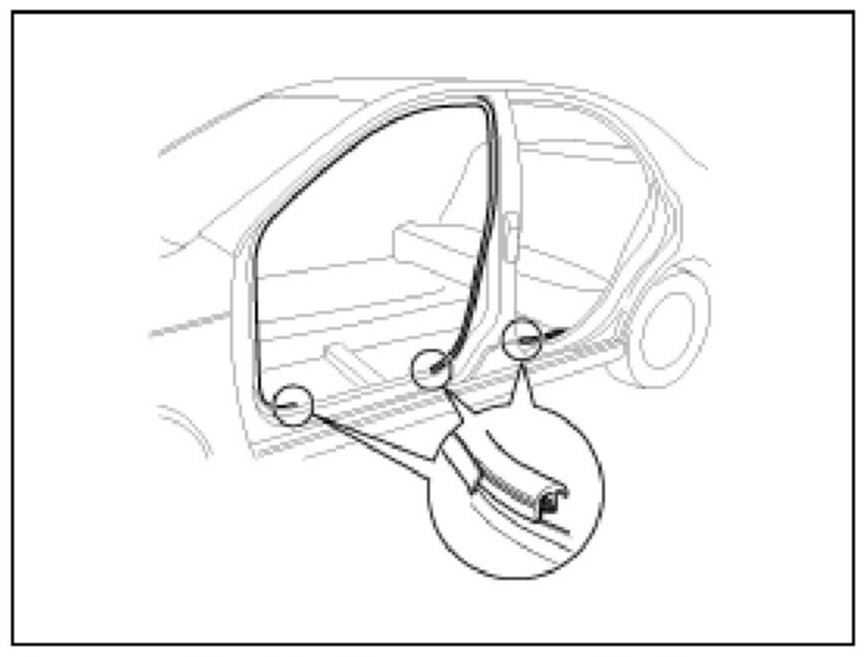 NOTE: Lower both front door windows and leave them in that condition until the vehicle can be put back into service. If the vehicle were completely closed, quickly closing a door could break the seal.
