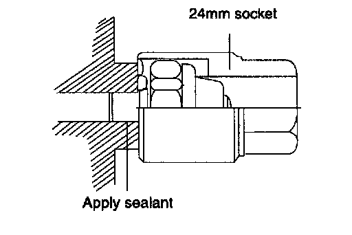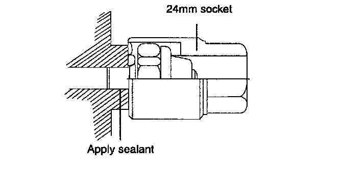 9. Using a 24 mm deep socket, install the oil pressure switch after applying sealant to the threaded area.