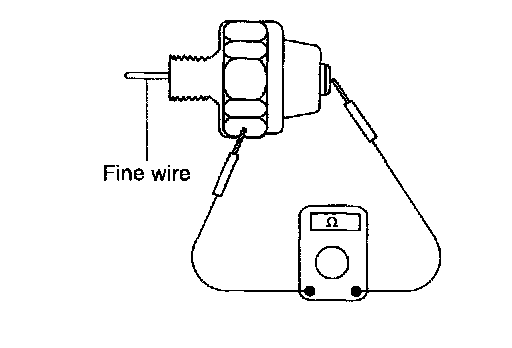 2. Check the continuity between the terminal and the body when the fine wire is pushed. If there is continuity even when the fine wire is pushed, replace the switch.