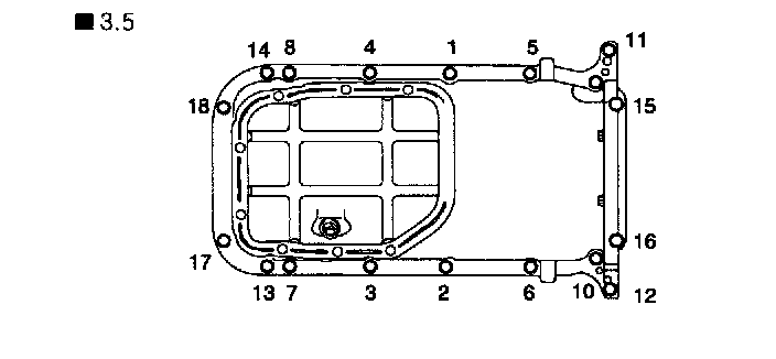 7. Install the oil pan and tighten the bolts as shown in the illustration.