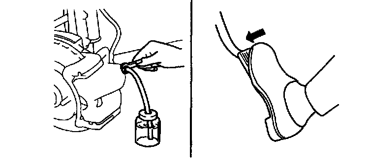 2. Connect a vinyl tube to the wheel cylinder bleeder screw and insert the other end of the tube in a container of brake fluid which is half full.