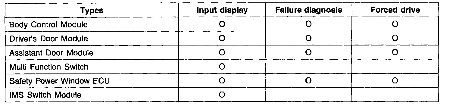 3. Input display and output forced drive can be performed in each of ADM, DDM, and IMS units Though, failure diagnosis is limited to the certain diagnosis ranges.