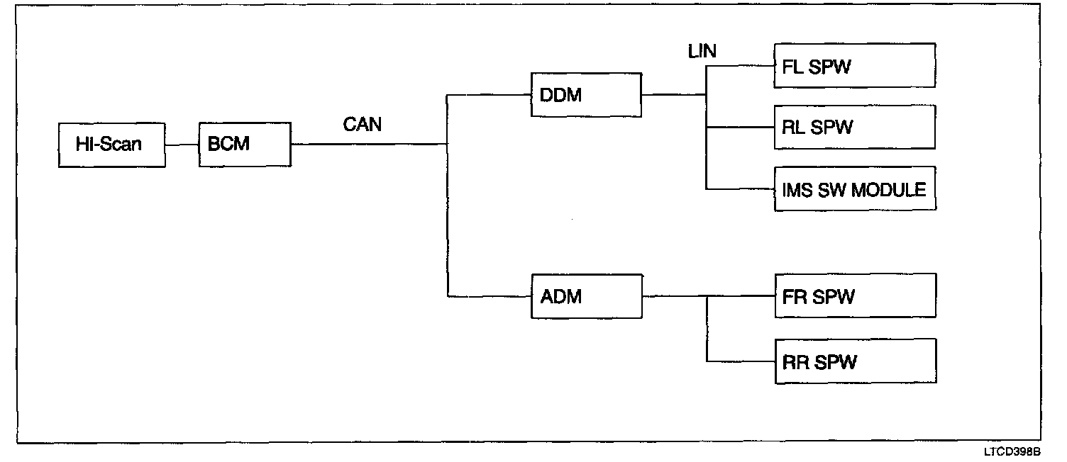 2. Only BCM communicates directly with Hi-scan, and the other units perform self-diagnostic function by BCM through the mediator of CAN or LIN.