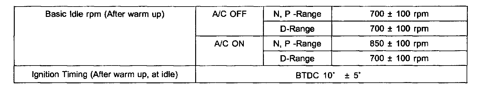 Idle Speed: Specifications
