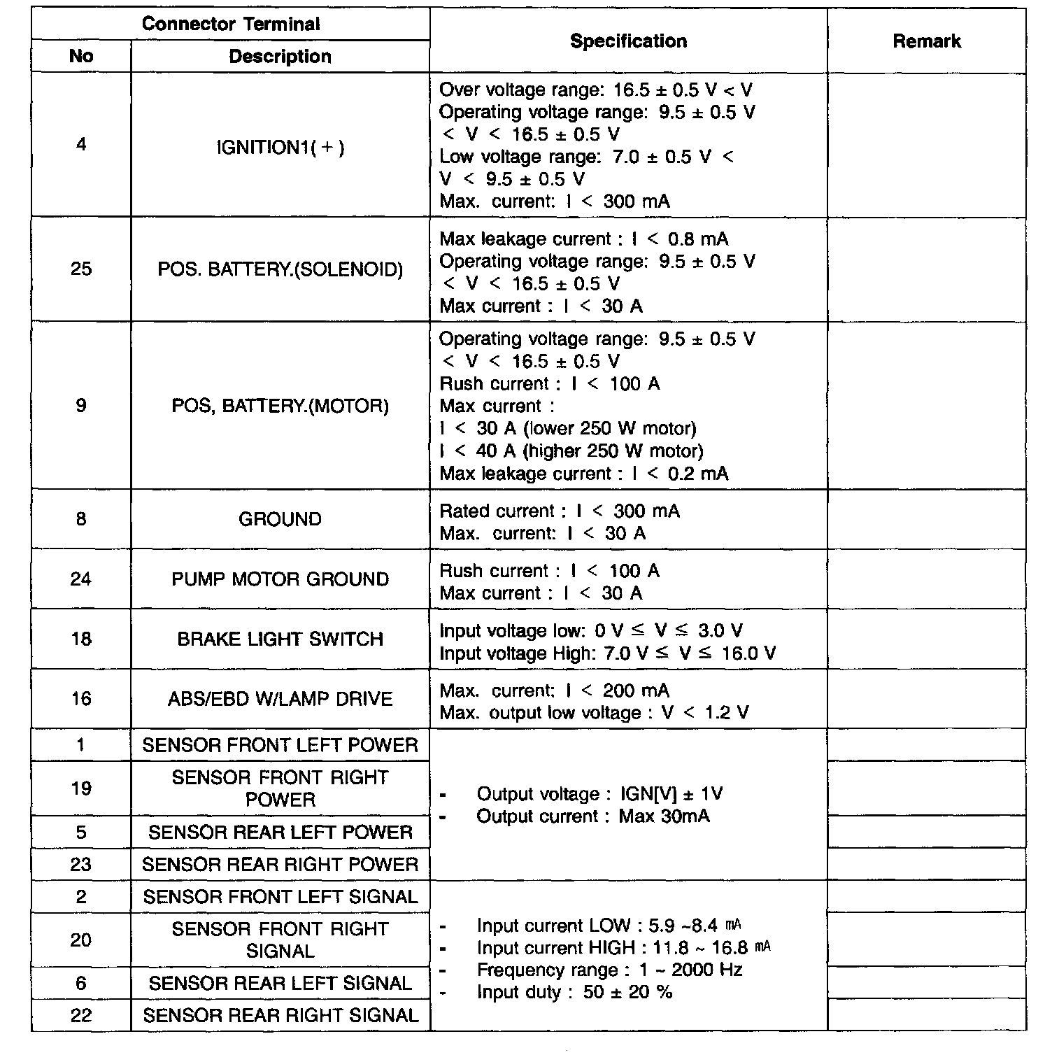 ABS CONNECTOR INPUT/OUTPUT Part 2:
