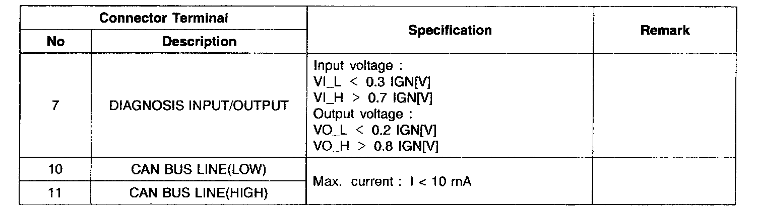 Pinout Values and Diagnostic Parameters