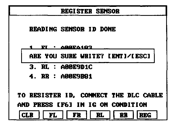 Sensor Initiating Procedure1. Read the four sensors ids starting with sensor 1 (1 normally front left, 2 front right, 3 rear left, 4 rear right).