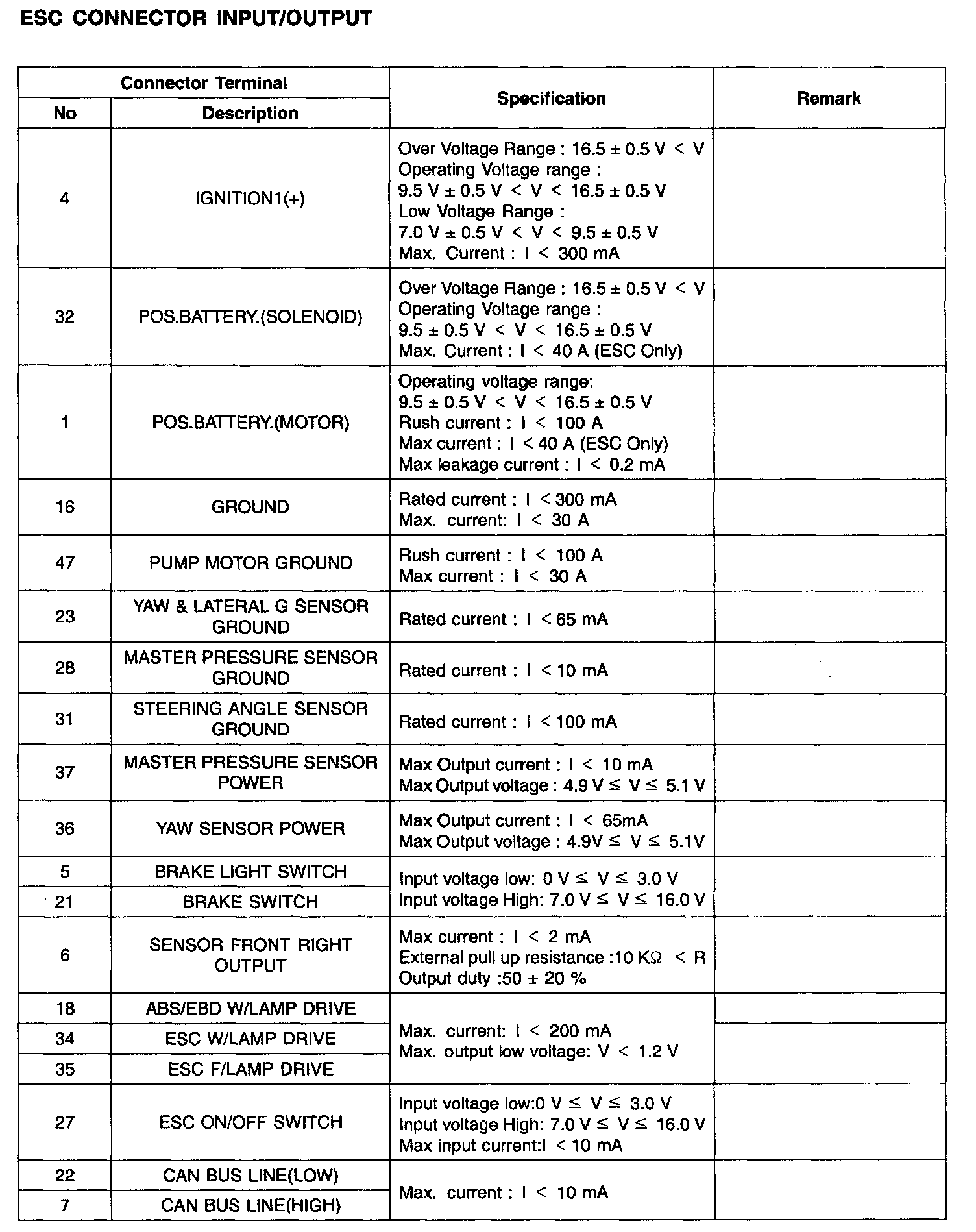 ESC CONNECTOR INPUT/OUTPUT Part 2: