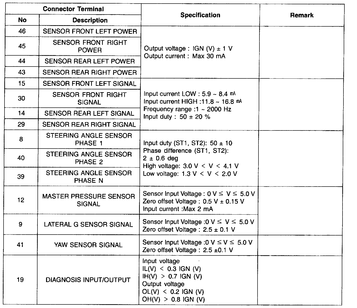 Control Module Pinout Values - ECS (Electronic Stability Control)