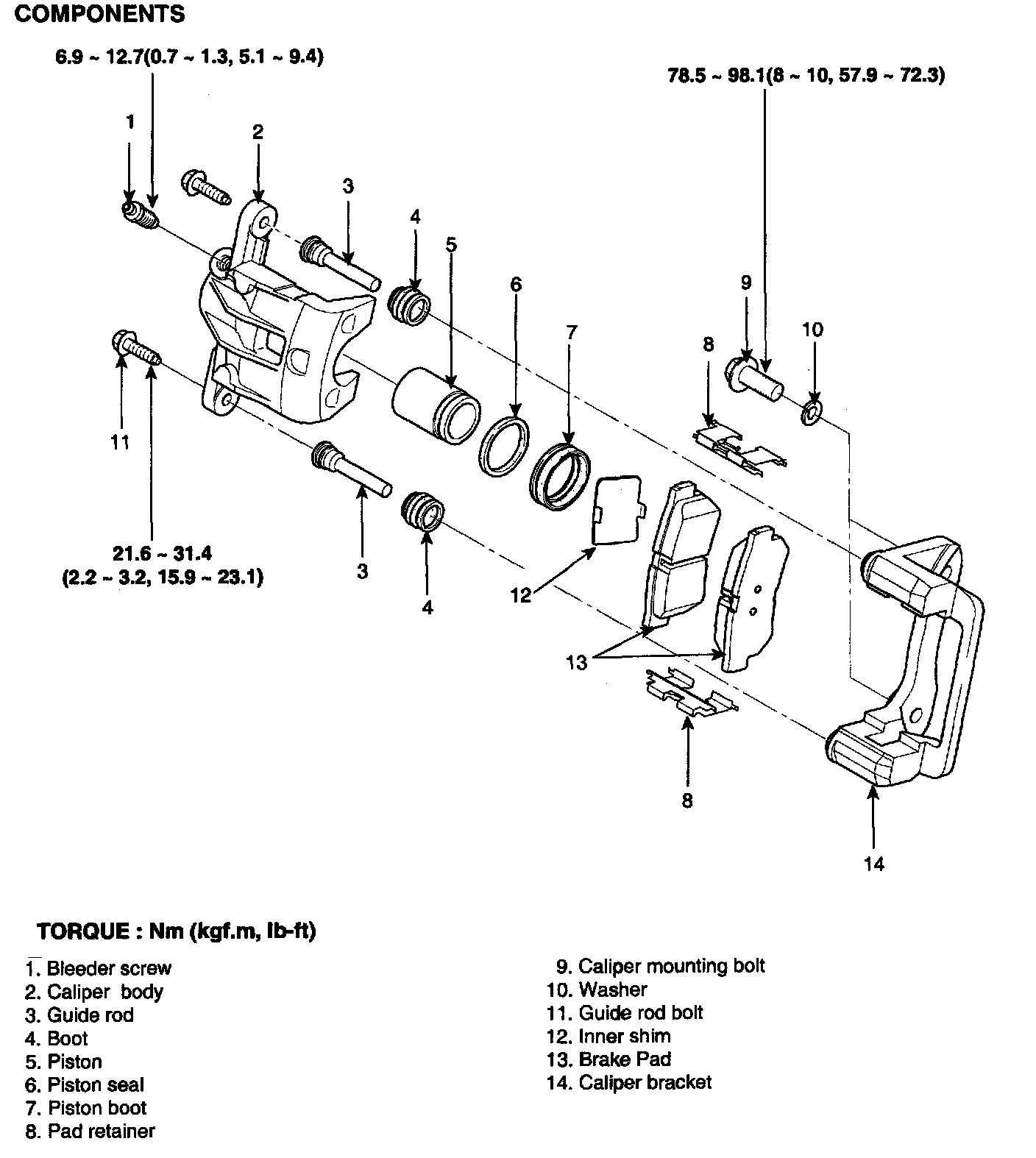 NOTE: Engagement of the brake may require a greater pedal stroke immediately after the brake pads have been replaced as a set Several applications of the brake pedal will restore the normal pedal stroke.