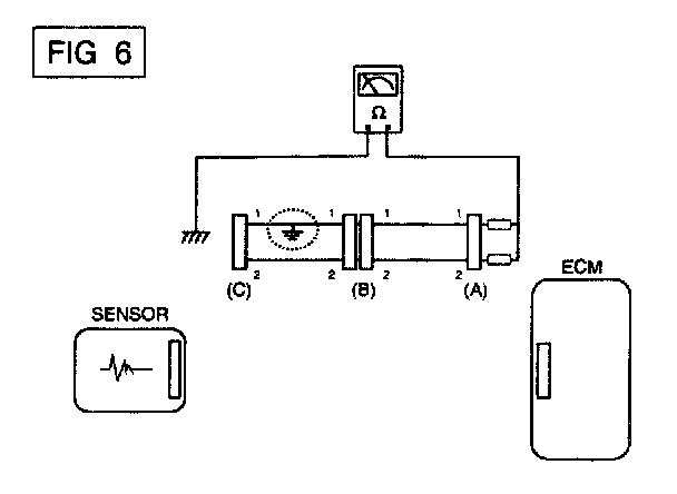 a. Disconnect connectors (A), (C) and measure for resistance between connector (A) and Chassis Ground as shown in [FIG. 6].