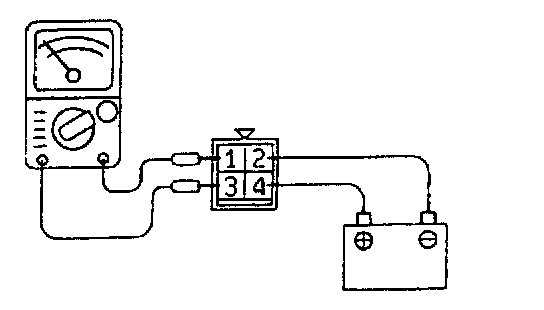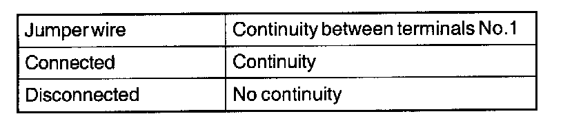 3) Check the continuity between terminal (1) and terminal (3) of the AIT control relay when the jumper wires are connected to and disconnected from the battery.