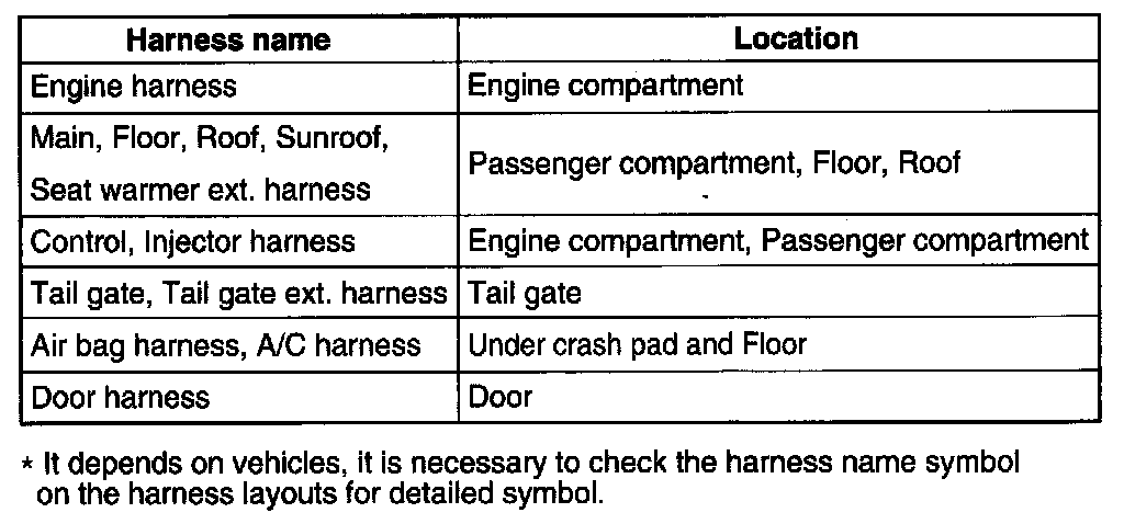 Electrical wiring connectors are classified according to the wiring parts in the Harness Layouts.