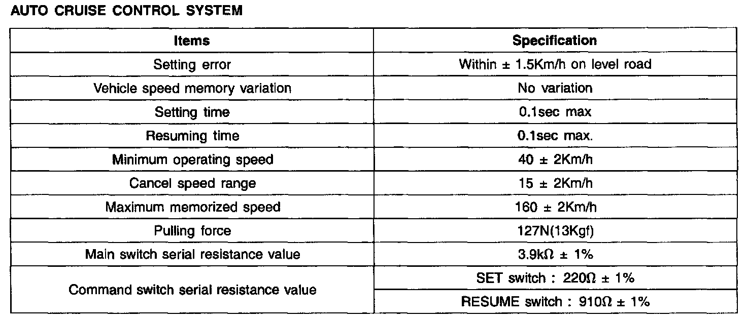 Cruise Control: Specifications