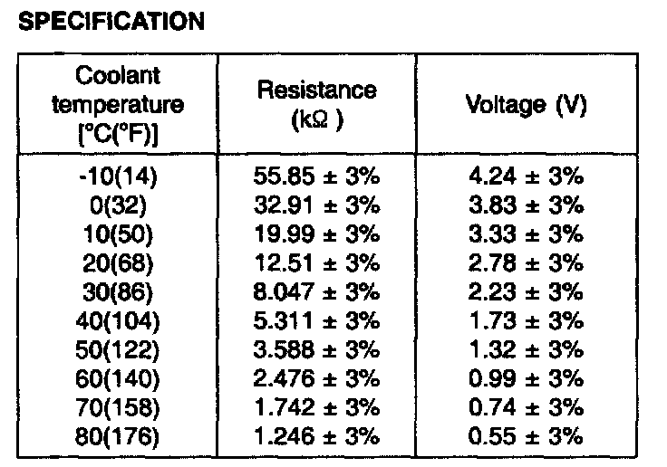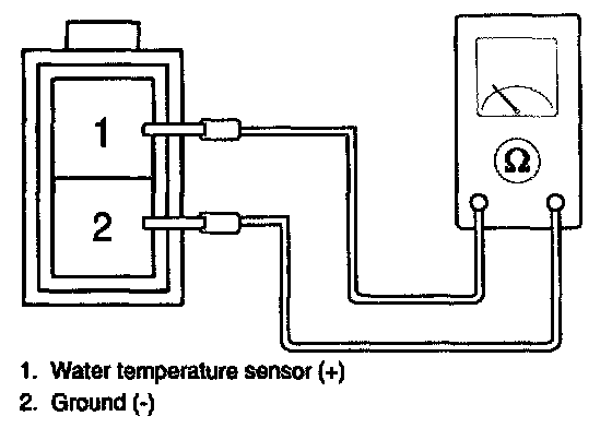 3. If the measured resistance is not specification, substitute with a known-good water temperature sensor and check for proper operation.
