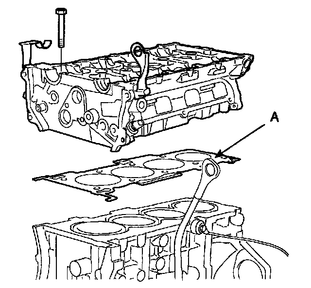 2. Install the cylinder head gasket (A) on the cylinder block.
