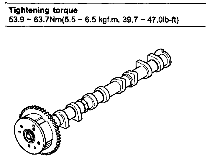NOTE: Hold the hexagonal head wrench portion of the camshaft with a vise, and install the bolt and CVVT assembly.