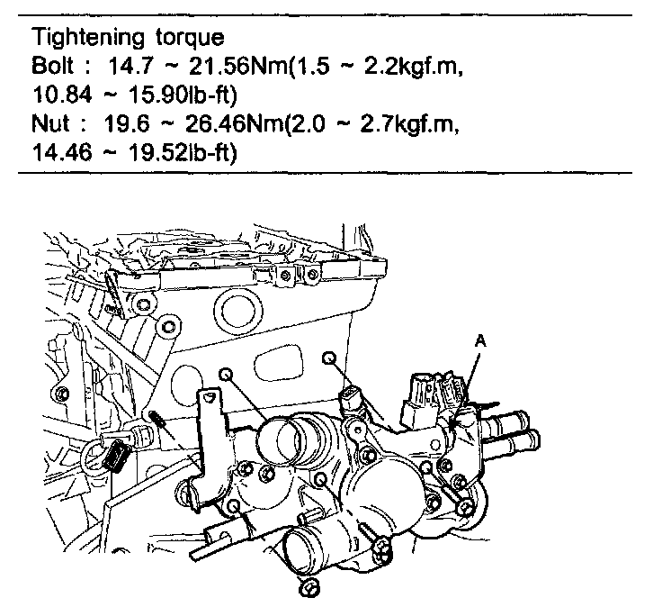 ^ Assemble water temp control assembly and water inlet pipe to water pump assembly before nuts for assembling of water inlet pipe to be tightened.