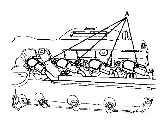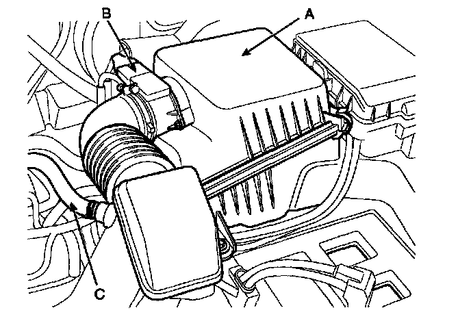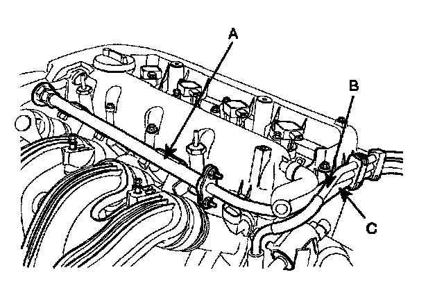 14. Install delivery pipe (A), brake hose (B), and PCSV hose (C).