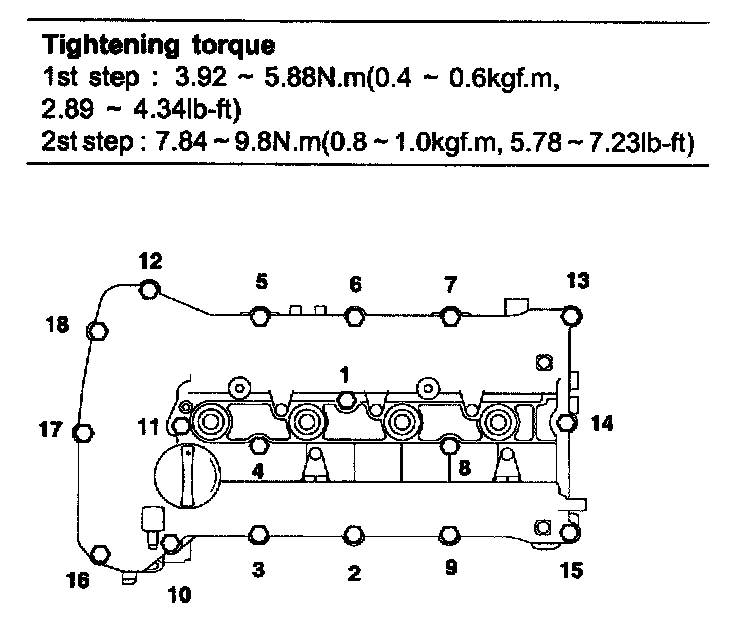 Tightening torque 7.84 - 9.8 Nm (0.8 - 1.0 kgf.m, 5.78 - 7.23 ft. lbs.)
