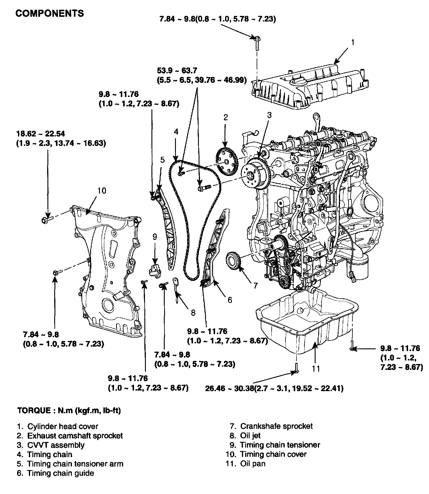 5) The firing and/or blow out test should not be performed within 30 minutes after the timing chain cover was assembled.
