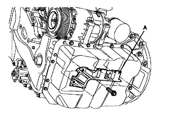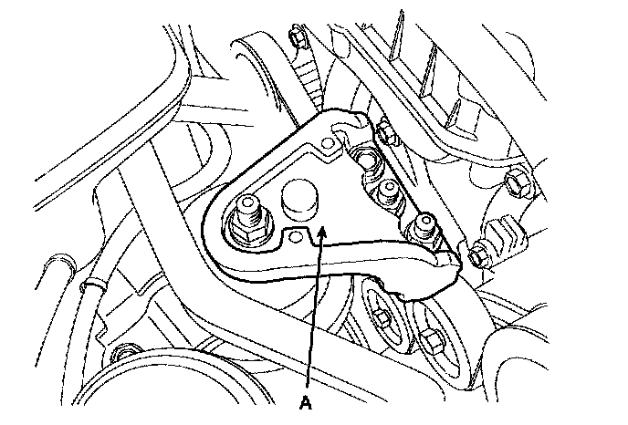 6. Install the balance shaft tensioner (A) and remove the set pin.