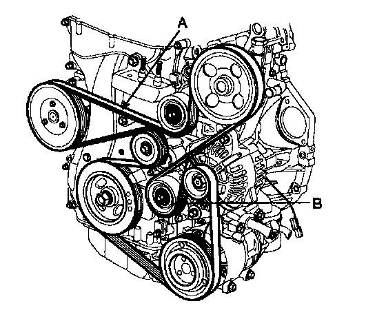 19. Install drive belt tensioner (B) and tensioner pulley.