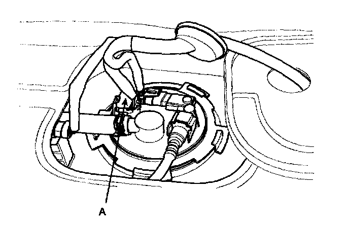 2. Disconnect the fuel feed quick connector (A) and the vapor hose (B).
