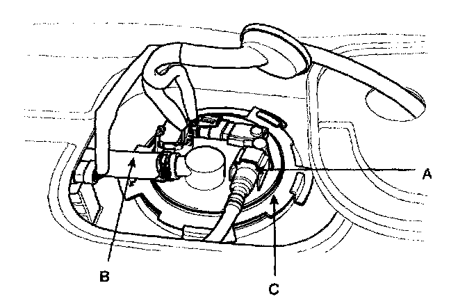 3. Unscrew the fuel pump locking ring (C) with the special service tool (SST No.: 09310 - 3K000) and remove the fuel pump assembly.