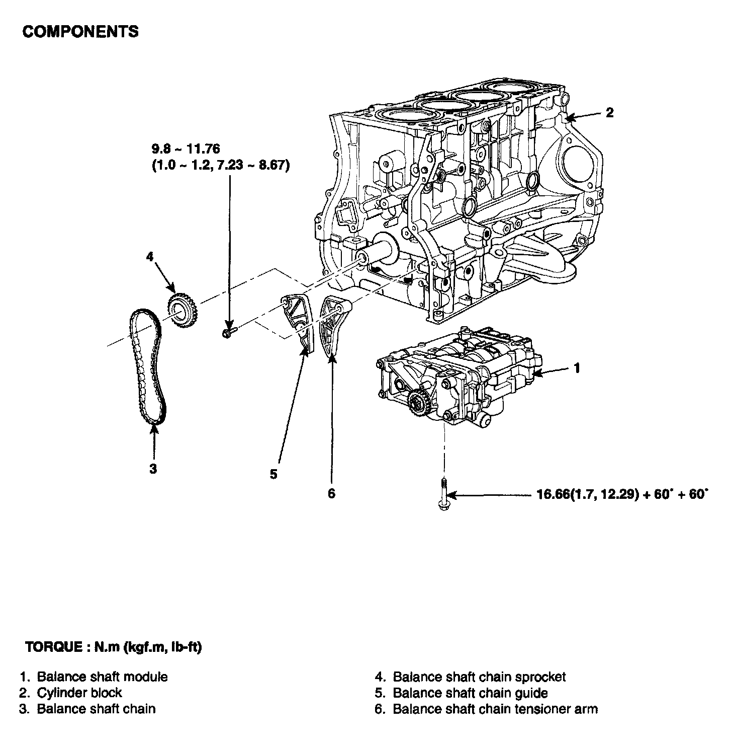 5. Install the balance shaft tensioner arm.