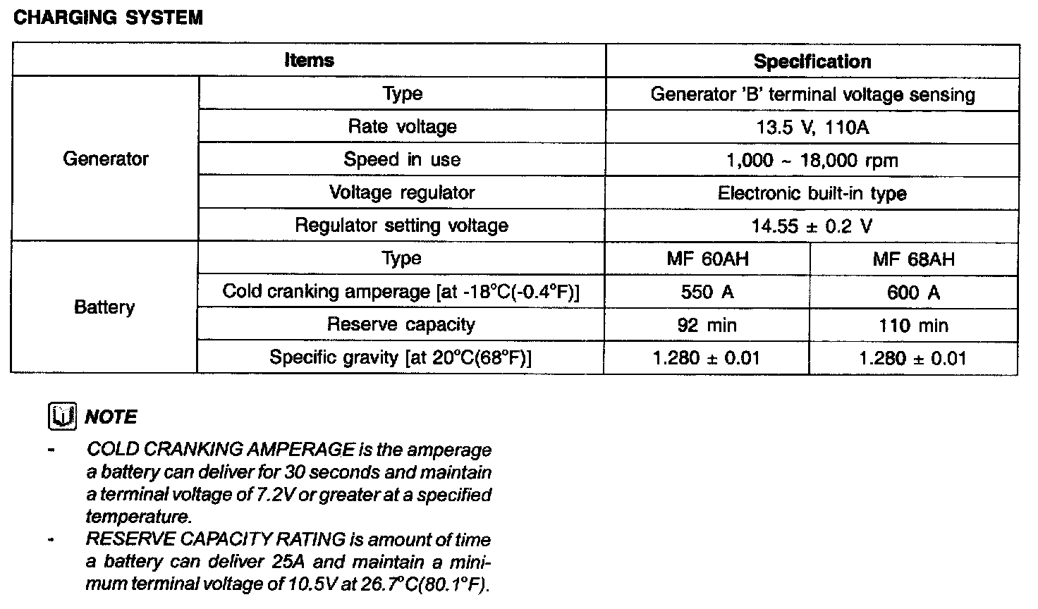 Charging System - Specification: