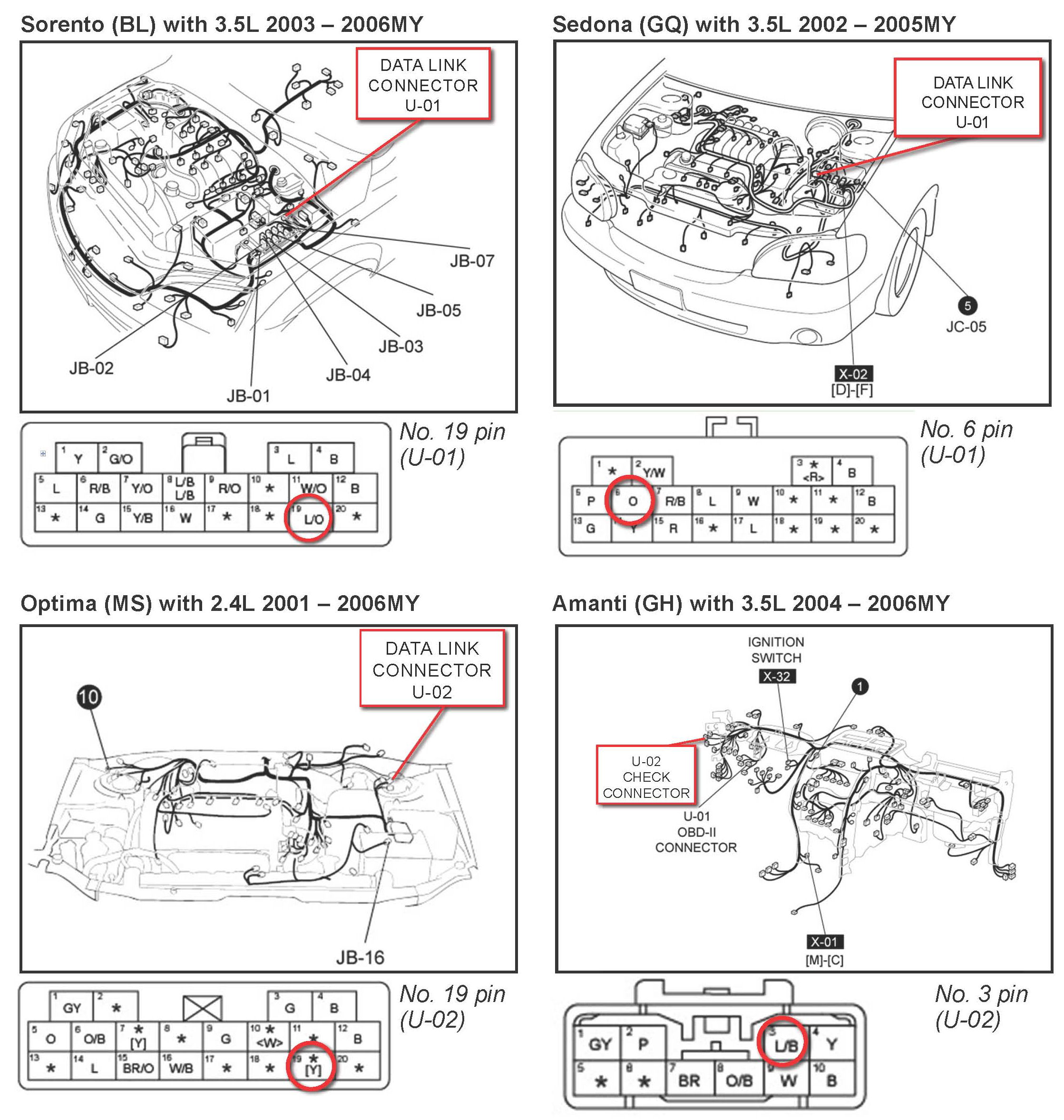 This bulletin provides information relating to Sorento (BL) 3.5L 2003-2006MY Sedona (GQ) 3.5L 2002-2005MY, Optima (MS) 2.4L 2001-2006MY, Amanti (GH) 3.5L 2004-2006MY vehicles. In affected vehicles an intermittent short to ground in a circuit only intended for testing purposes may cause the MIL to illuminate and a DTC P1330 (Spark Timing Adjust) to be stored. As soon as the fault disappears the MIL may turn off and the fault code can also be immediately erased by the engine management system making it hard to diagnose the concern.