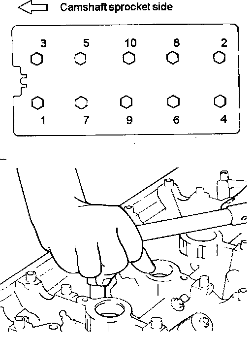 1. Remove the cylinder head bolts as shown in the illustration.