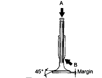 Replace the valve if the margin has decreased to less than the service limit.