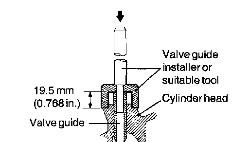 The valve guide is installed by using a press fit. Using a Valve Guide Installer (09222-21200 A/B and 09222-28400) or suitable tool, replace the valve guide according to the following procedure.