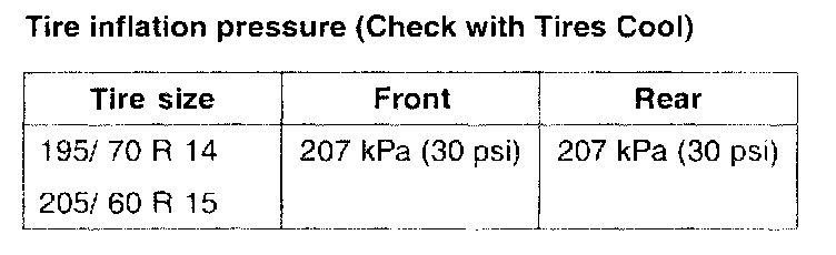 Check the tire inflation pressures as follows.