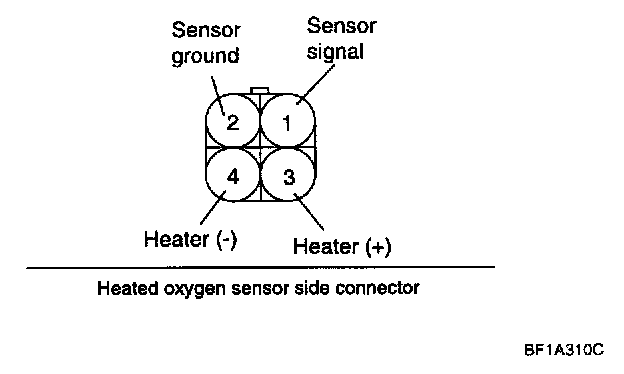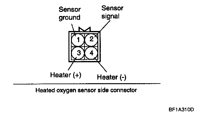 1. Disconnect the oxygen sensor connector, and measure the resistance between terminal 3 and terminal 4.