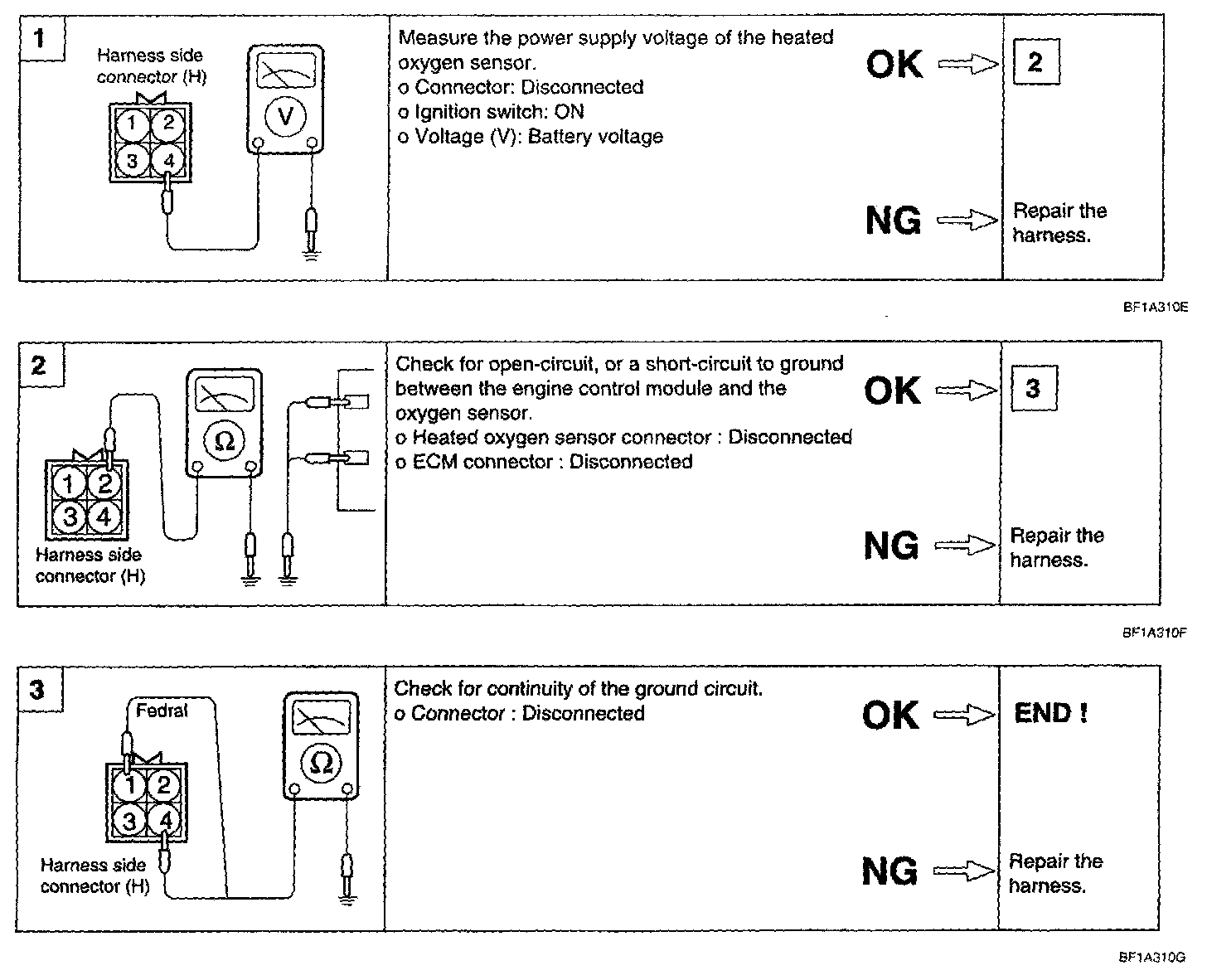 2. If the HO2S check results were normal, but the sensor output voltage is out of specification, check for the following items (related to air fuel ratio control system):