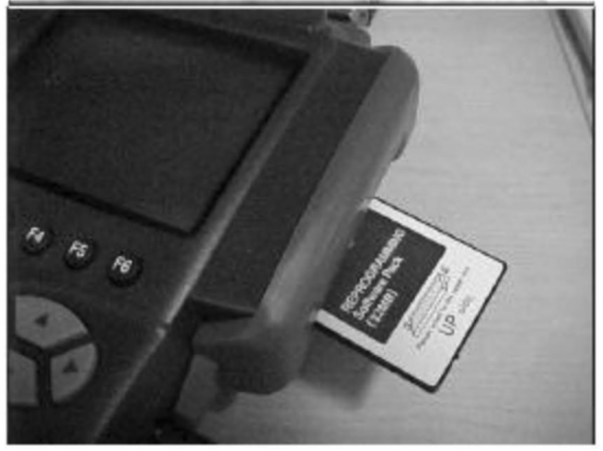 3. Remove the system software card from the Hi-Scan Pro and insert the blue reprogramming software card with the new PCM program into the Hi-Scan Pro upper slot.