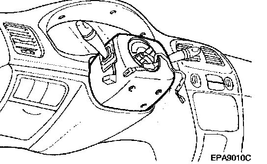9. Remove the steering column mounting bolts (4 bolts).