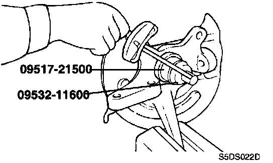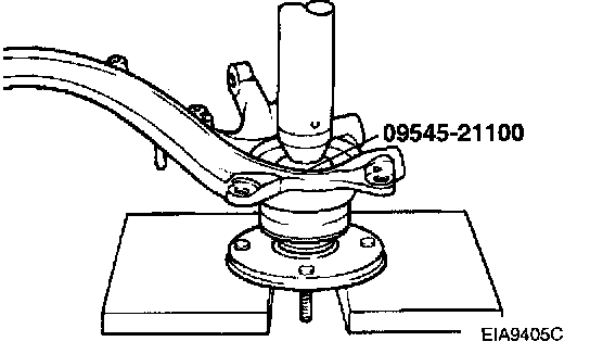 NOTE: Do not press the outer race of the wheel bearing. That will cause damage of the bearing assembly.
