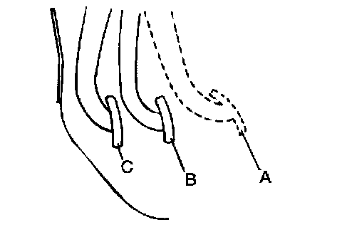 CAUTION: The rapidly-repeated operation of the clutch pedal in B-C range may cause the release cylinder's position to be forced out from the release cylinder body during the air bleeding, repress the clutch pedal after it returns to the "A" point completely.