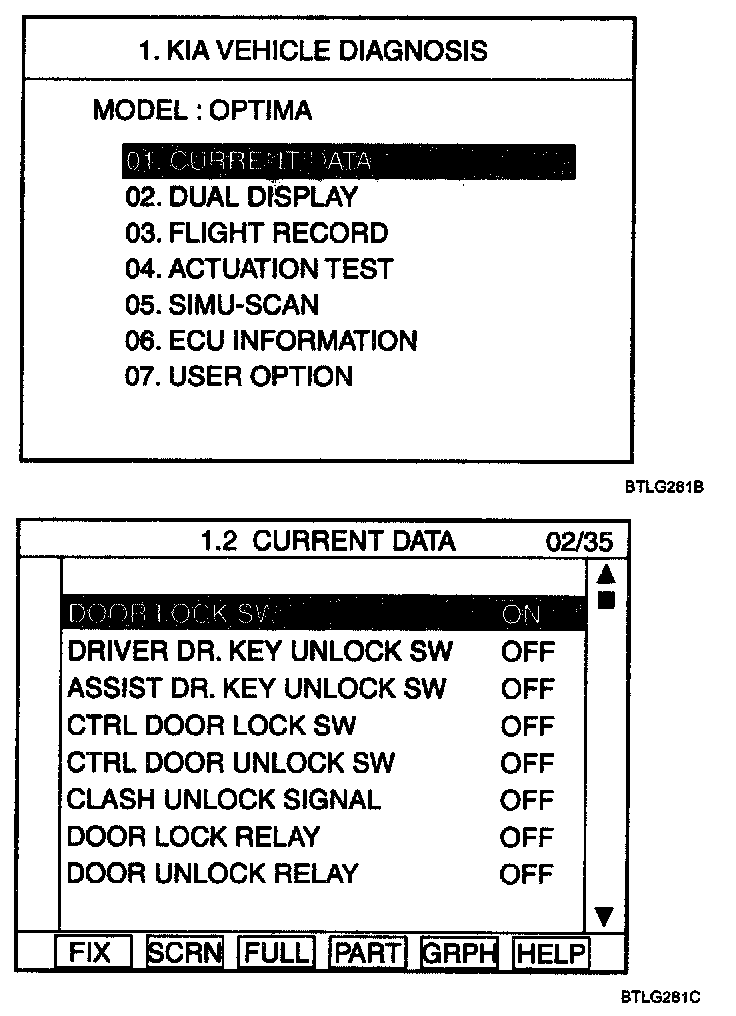 2. To check the input Value of door lock switch, select option "09. BODY CONTROL MODULE".