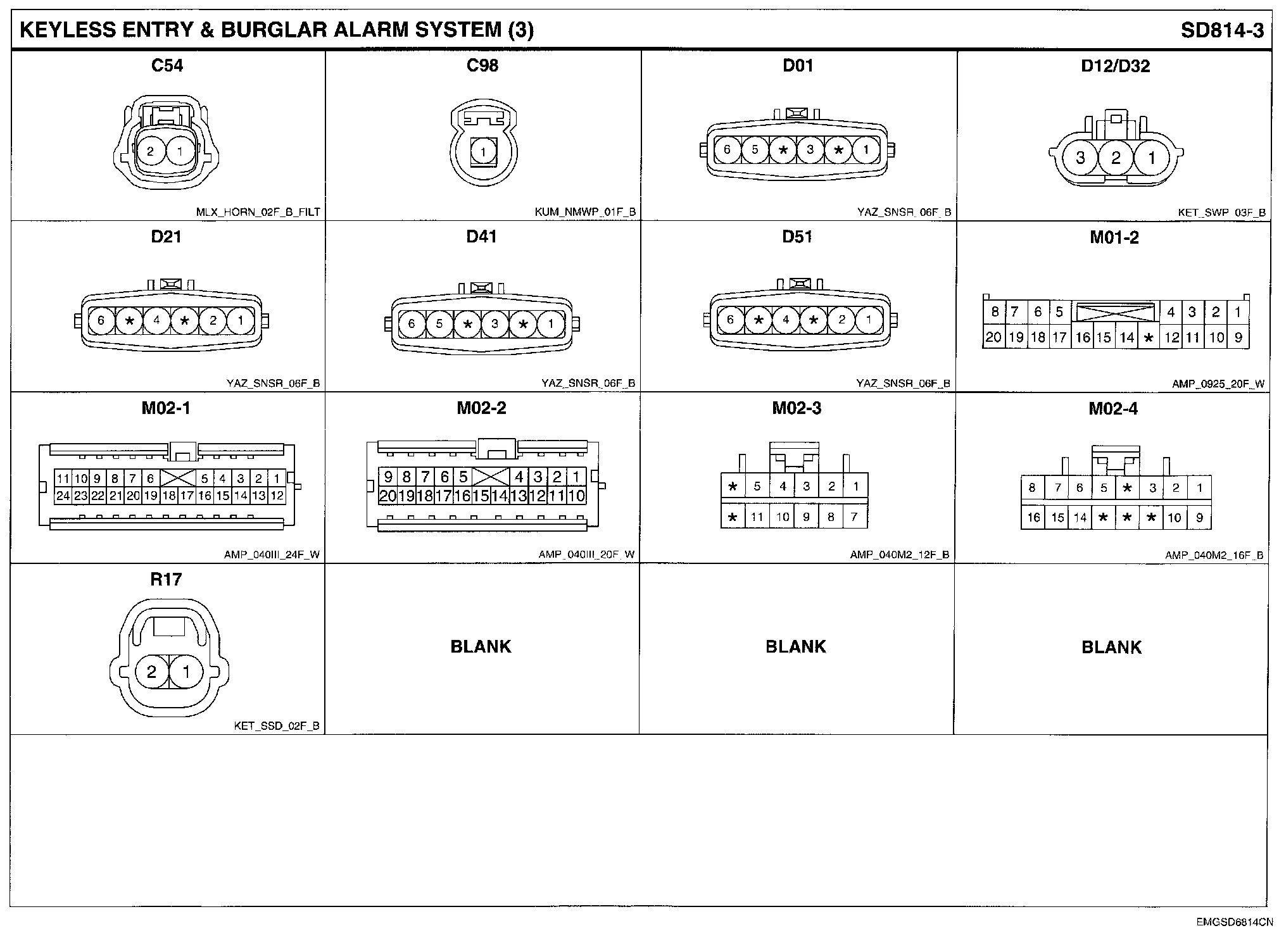 Keyless Entry & Burglar Alaram System Connector Pin Outs: