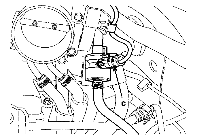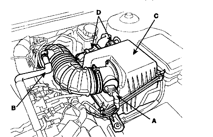 2) Install the intake air hose and air cleaner assembly (C).