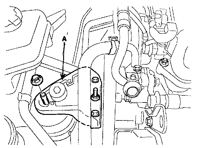 2) Remove the engine mounting bracket (A).